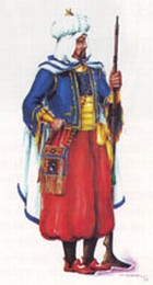Desconocemos el autor del primer diseño “para Moros de Caballería Titulada de Berberia”, presentado por Vicente Sanz en 1869, pero probablemente estuvo inspirado en la indumentaria de la guardia napoleónica.