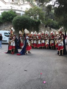 Y como no podía ser menos, la Escuadra del Mig de la Filà Berberiscos se ha desplazado hasta Fontilles para deleitar a todos los allí presentes con su buen hacer y su elegancia. Mostrando de nuevo el impresionante diseño del traje que lucieron las pasadas Fiestas, han desfilado por las calles del Sanatorio cumpliendo con la tradición de esta época.